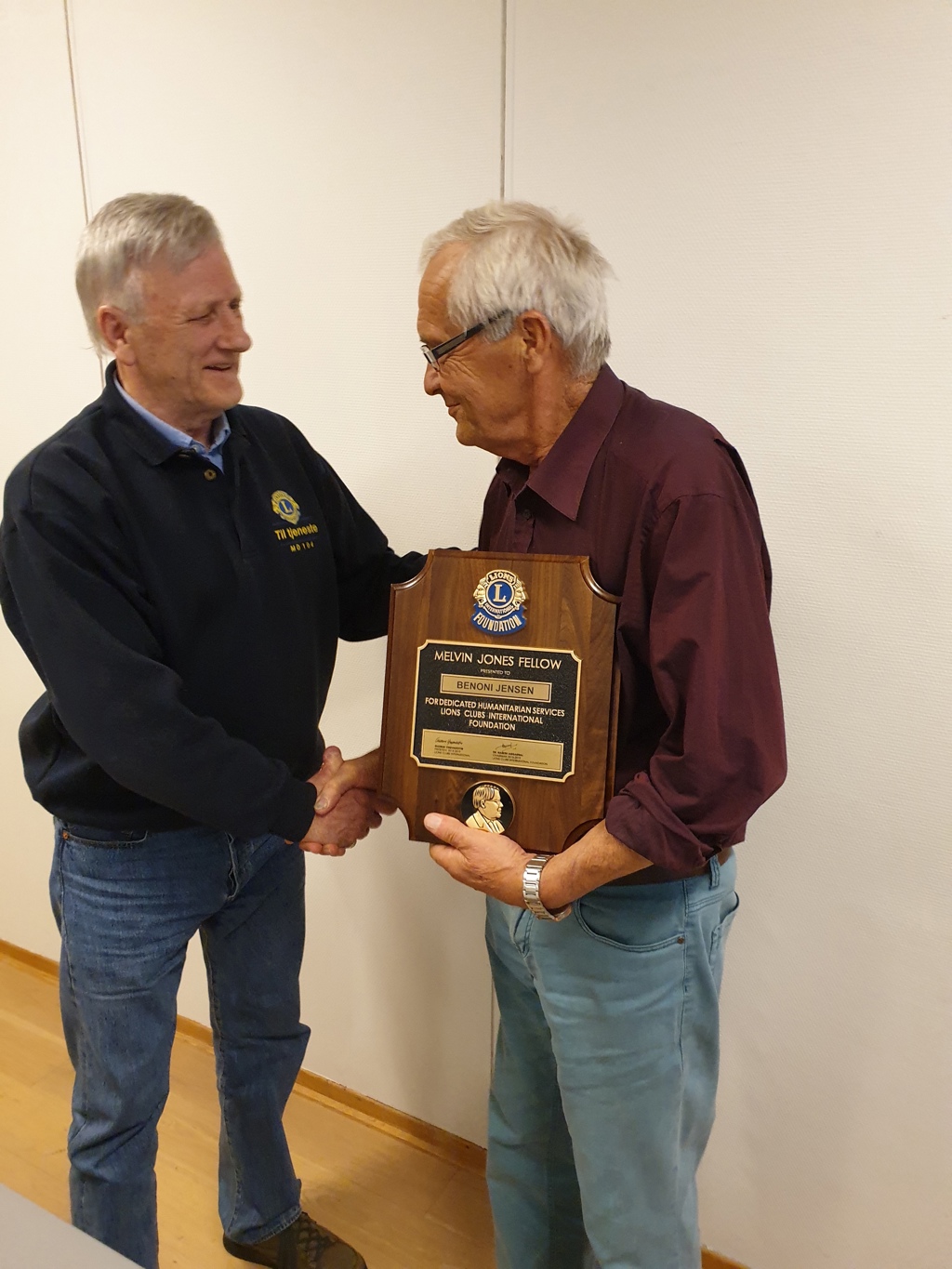 Under mai-møte ble Benoni Jensen tildelt Melvin Jones Fellow for sitt arbeid i Lions Club Mo i Rana.